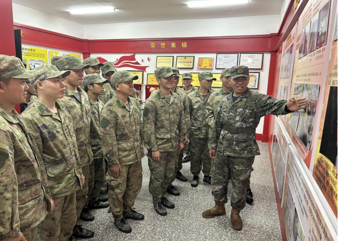 在部队荣誉室,一张张历史照片、一枚枚奖章锦旗、一段段英雄事迹,生动展现了部队的光辉历程与优良传统。讲解员深情讲述官兵们忠诚履职、奋勇争先的战斗故事,青年们凝神聆听、驻足感悟,在红色传承中坚定从军报国、矢志强军的理想信念。
